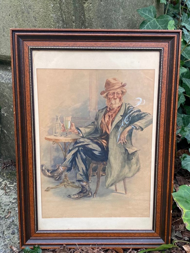 Aquarelle représentant un buveur d'absinthe, traces de signature, début XXè siècle