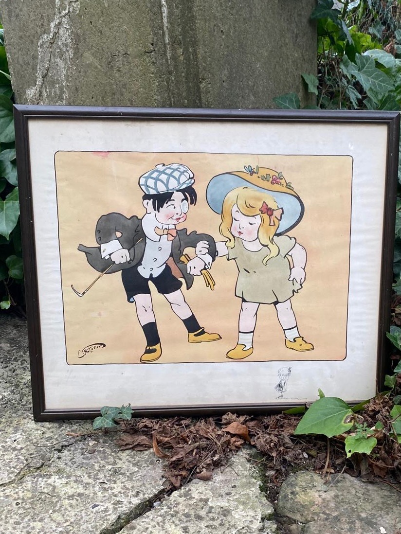 Lithographie humoristiqueLithographie humoristique "les enfants dandys", signature dans la planche, début XXè siècle