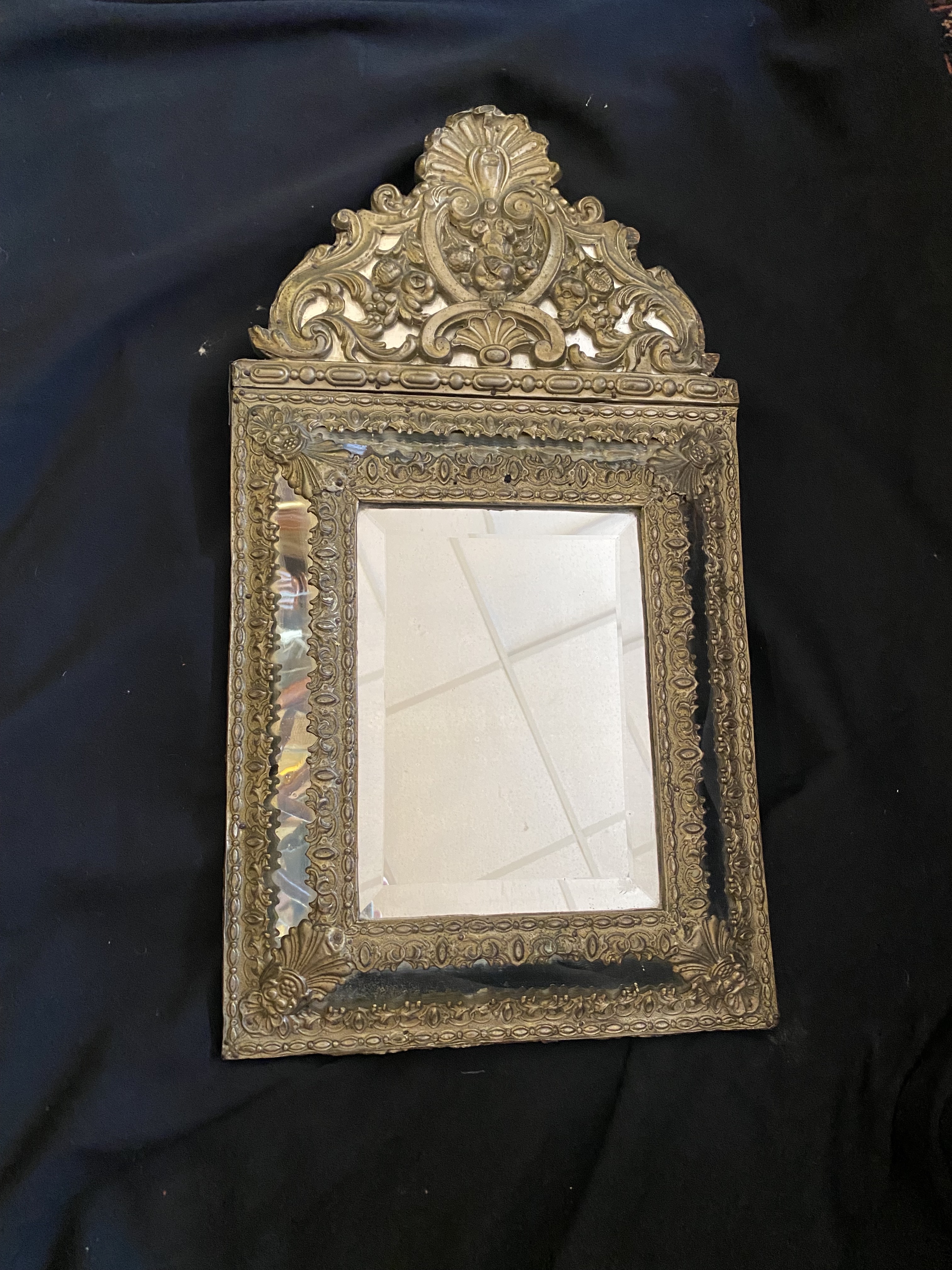 Miroir à parcloseAncien miroir à parclose en laiton repoussé
